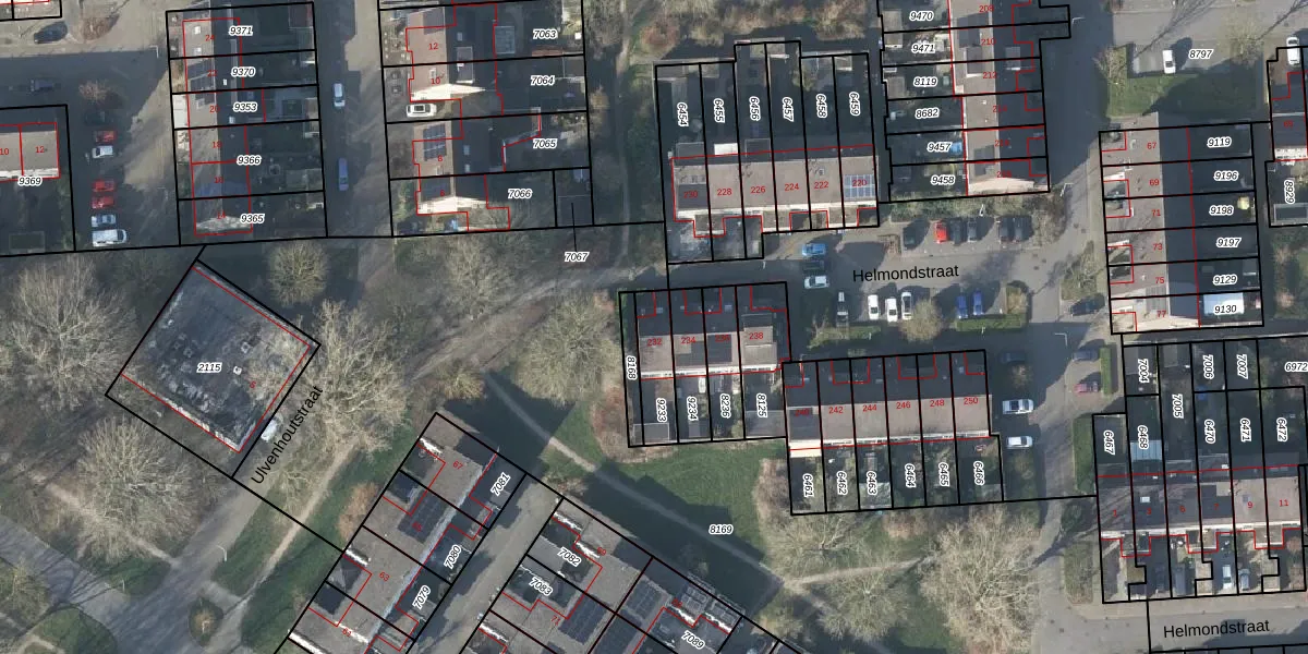 Gebruik de zoekbalk of klik op een perceel voor informatie over de adressen binnen dit perceel.
