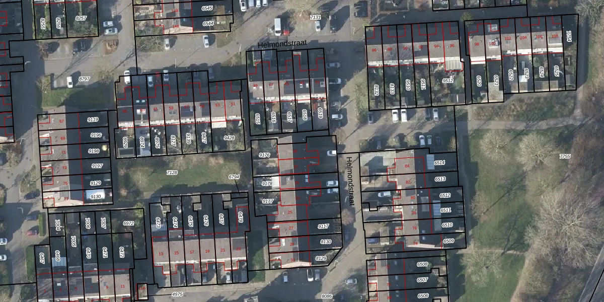 Het perceel waarop Helmondstraat 39 staat heeft een oppervlakte van 327 m². Dit is een groot perceel. De perceeloppervlakte wordt geregistreerd door het Kadaster. Gedetailleerde informatie over de maten van dit perceel kunt u vinden in het rapport Kadastrale kaart met maatvoering van Helmondstraat 39.