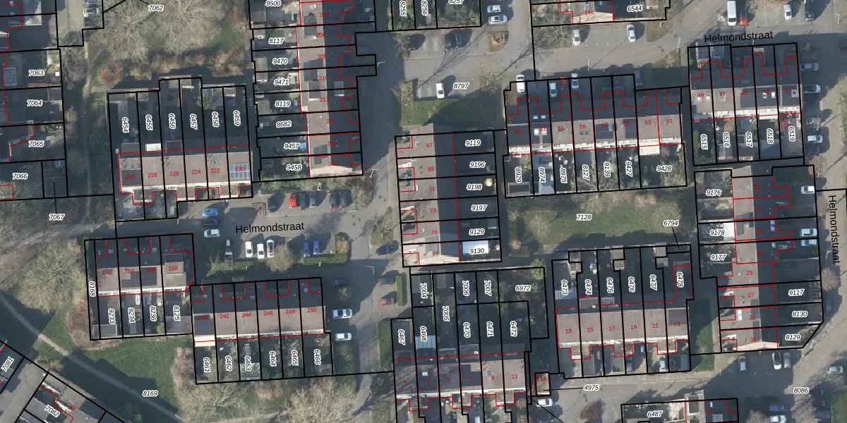 Het perceel waarop Helmondstraat 73 staat heeft een oppervlakte van 118 m². Dit is een middelgroot perceel. De perceeloppervlakte wordt geregistreerd door het Kadaster. Gedetailleerde informatie over de maten van dit perceel kunt u vinden in het rapport Kadastrale kaart met maatvoering van Helmondstraat 73.