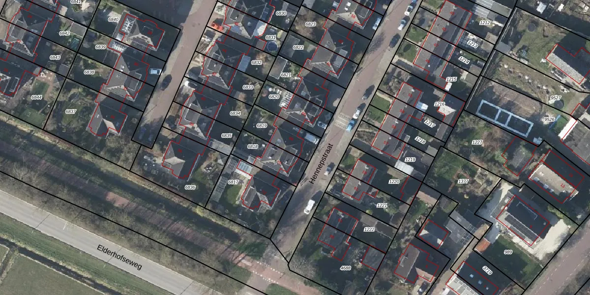 Gebruik de zoekbalk of klik op een perceel voor informatie over de adressen binnen dit perceel.