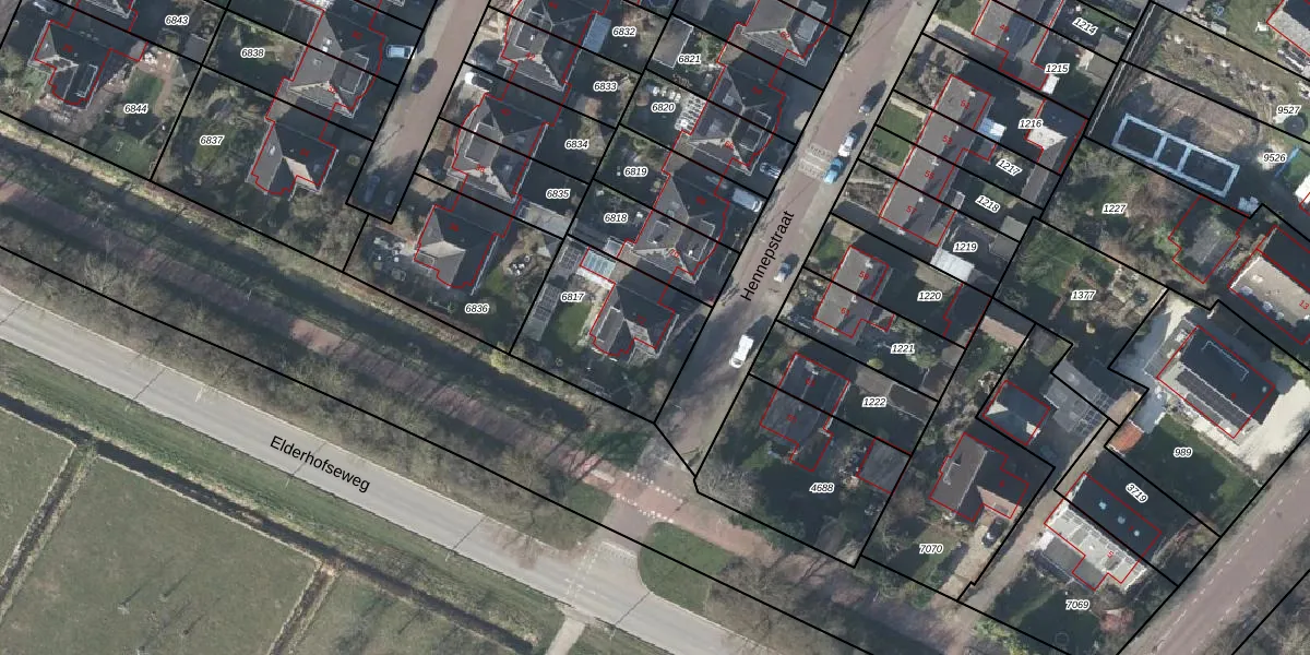 Gebruik de zoekbalk of klik op een perceel voor informatie over de adressen binnen dit perceel.