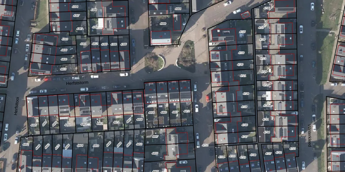 Het perceel waarop Herfststorm 24 staat heeft een oppervlakte van 177 m². Dit is een middelgroot perceel. De perceeloppervlakte wordt geregistreerd door het Kadaster. Gedetailleerde informatie over de maten van dit perceel kunt u vinden in het rapport Kadastrale kaart met maatvoering van Herfststorm 24.