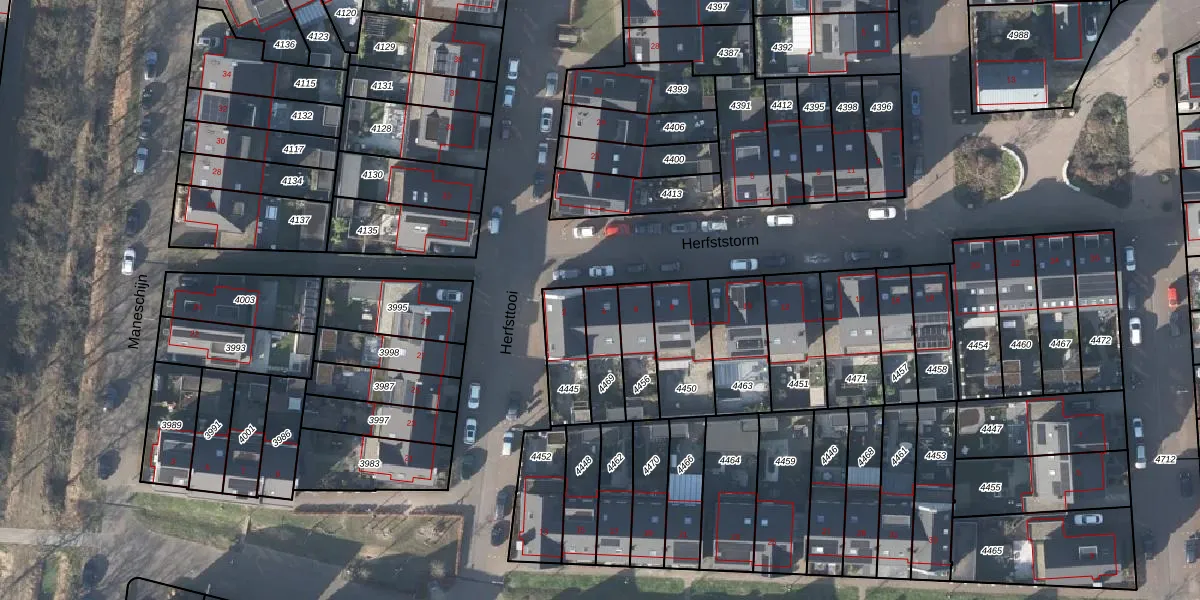 Gebruik de zoekbalk of klik op een perceel voor informatie over de adressen binnen dit perceel.
