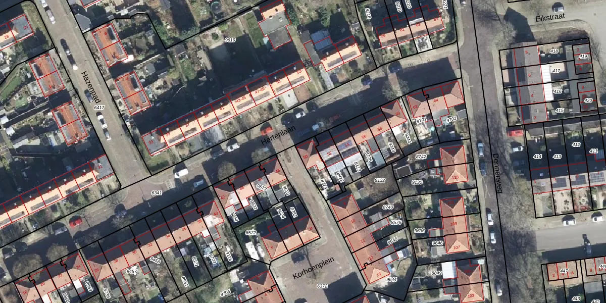 Gebruik de zoekbalk of klik op een perceel voor informatie over de adressen binnen dit perceel.