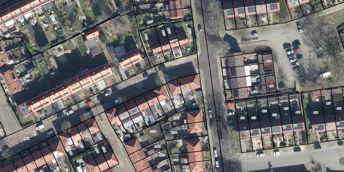 Gebruik de zoekbalk of klik op een perceel voor informatie over de adressen binnen dit perceel.