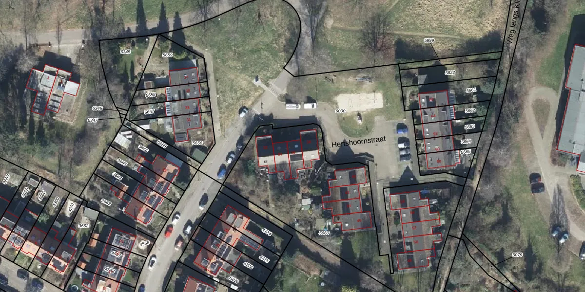 Het perceel waarop Hertshoornstraat 36 staat heeft een oppervlakte van 2386 m². Dit is een zeer groot perceel. De perceeloppervlakte wordt geregistreerd door het Kadaster. Gedetailleerde informatie over de maten van dit perceel kunt u vinden in het rapport Kadastrale kaart met maatvoering van Hertshoornstraat 36.