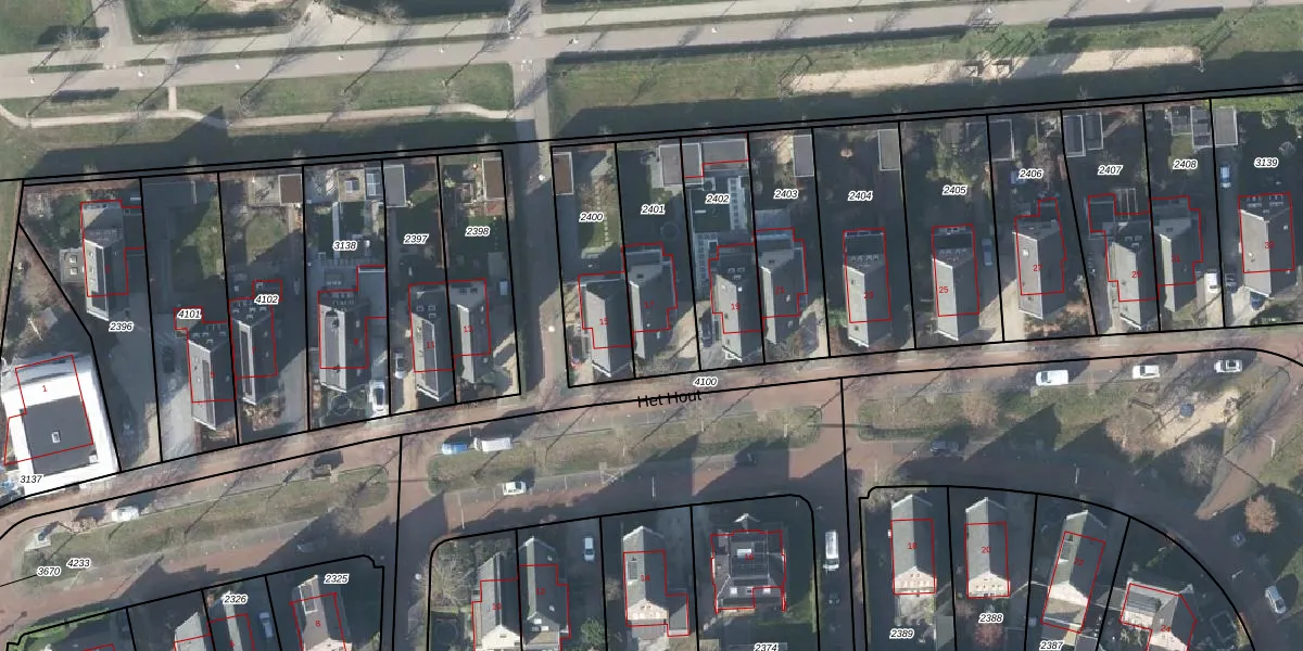 Het perceel waarop Het Hout 17 staat heeft een oppervlakte van 363 m². Dit is een groot perceel. De perceeloppervlakte wordt geregistreerd door het Kadaster. Gedetailleerde informatie over de maten van dit perceel kunt u vinden in het rapport Kadastrale kaart met maatvoering van Het Hout 17.