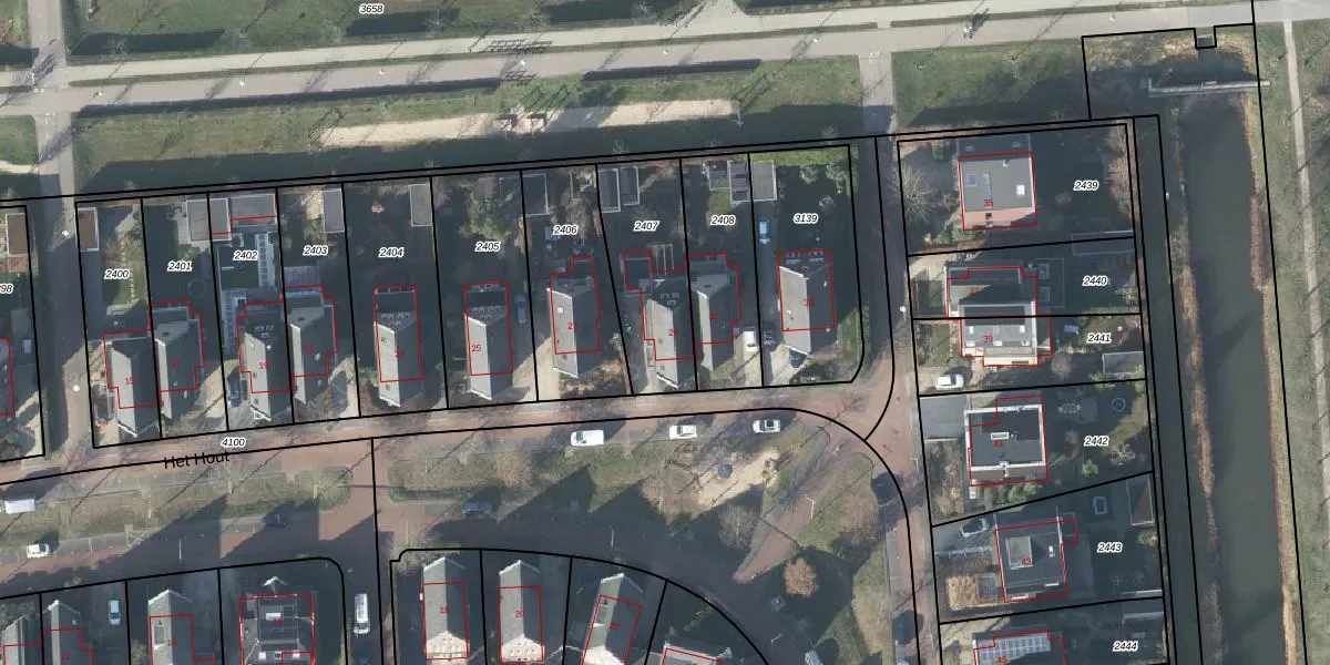 Het perceel waarop Het Hout 29 staat heeft een oppervlakte van 403 m². Dit is een groot perceel. De perceeloppervlakte wordt geregistreerd door het Kadaster. Gedetailleerde informatie over de maten van dit perceel kunt u vinden in het rapport Kadastrale kaart met maatvoering van Het Hout 29.