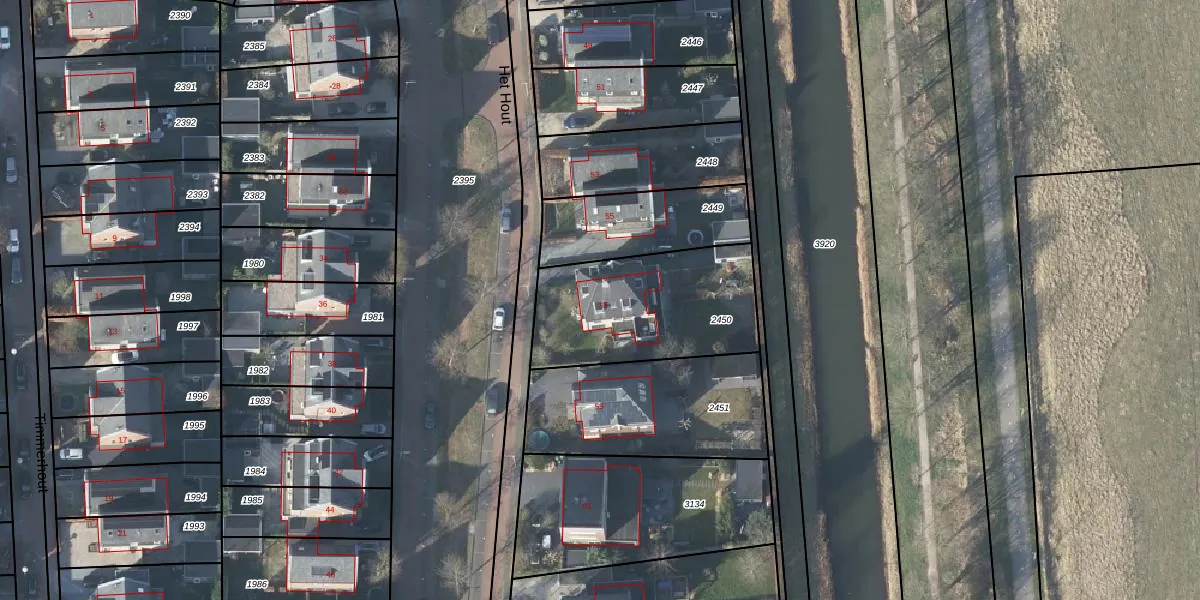 Het perceel waarop Het Hout 57 staat heeft een oppervlakte van 650 m². Dit is een groot perceel. De perceeloppervlakte wordt geregistreerd door het Kadaster. Gedetailleerde informatie over de maten van dit perceel kunt u vinden in het rapport Kadastrale kaart met maatvoering van Het Hout 57.