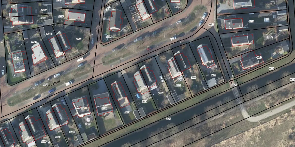 Gebruik de zoekbalk of klik op een perceel voor informatie over de adressen binnen dit perceel.