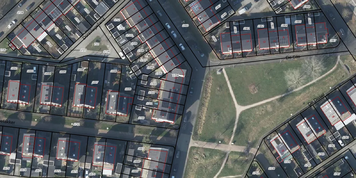 Gebruik de zoekbalk of klik op een perceel voor informatie over de adressen binnen dit perceel.