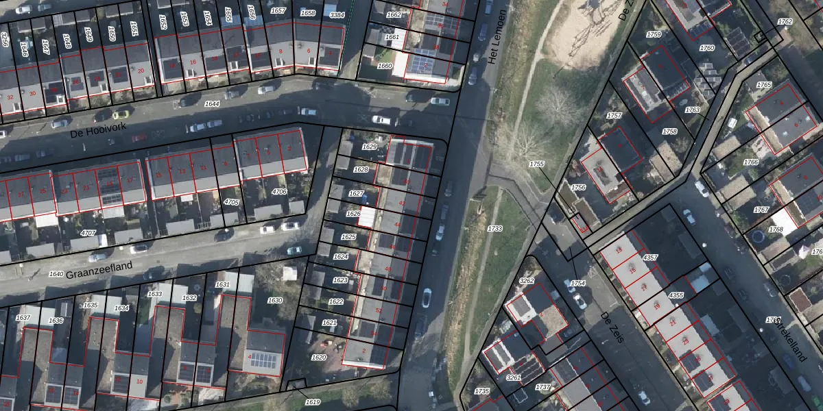 Gebruik de zoekbalk of klik op een perceel voor informatie over de adressen binnen dit perceel.