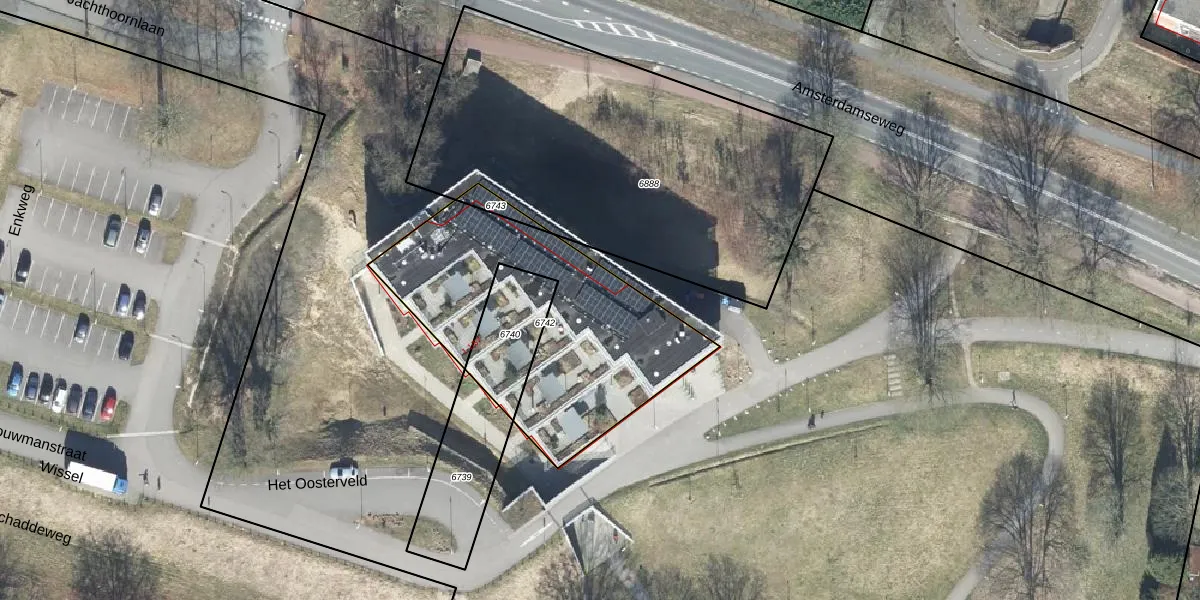 Het Oosterveld 1-35 is gelegen op kadastraal perceel AHM01P6742. Deze kadastrale aanduiding is uniek en wordt gebruikt door het Kadaster om eigendomsrechten en andere zakelijke rechten vast te leggen. Het perceel maakt onderdeel uit van de kadastrale gemeente Arnhem.