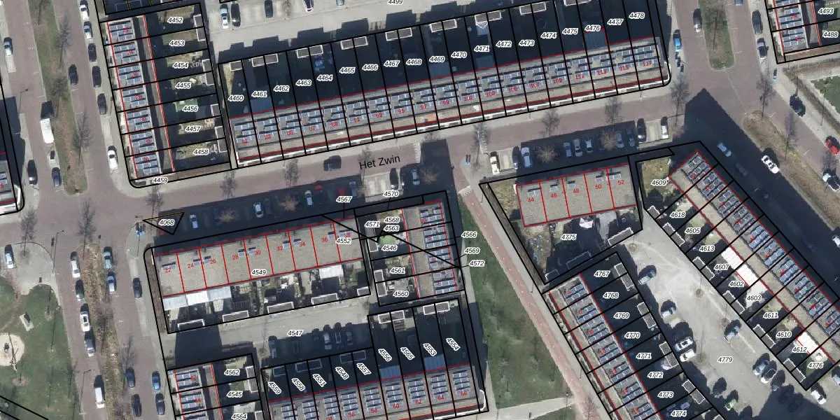 Gebruik de zoekbalk of klik op een perceel voor informatie over de adressen binnen dit perceel.