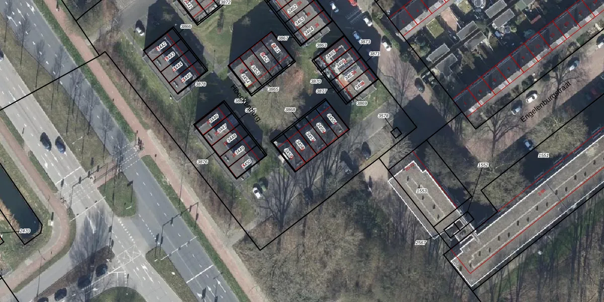 Gebruik de zoekbalk of klik op een perceel voor informatie over de adressen binnen dit perceel.