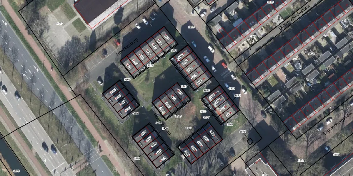 Het perceel waarop Hoeckenburg 31 staat heeft een oppervlakte van 55 m². Dit is een klein perceel. De perceeloppervlakte wordt geregistreerd door het Kadaster. Gedetailleerde informatie over de maten van dit perceel kunt u vinden in het rapport Kadastrale kaart met maatvoering van Hoeckenburg 31.