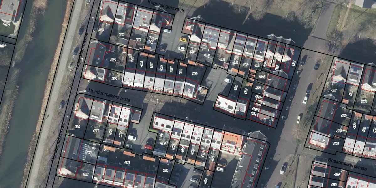 Het perceel waarop Hoedenmakersveste 13 staat heeft een oppervlakte van 210 m². Dit is een middelgroot perceel. De perceeloppervlakte wordt geregistreerd door het Kadaster. Gedetailleerde informatie over de maten van dit perceel kunt u vinden in het rapport Kadastrale kaart met maatvoering van Hoedenmakersveste 13.