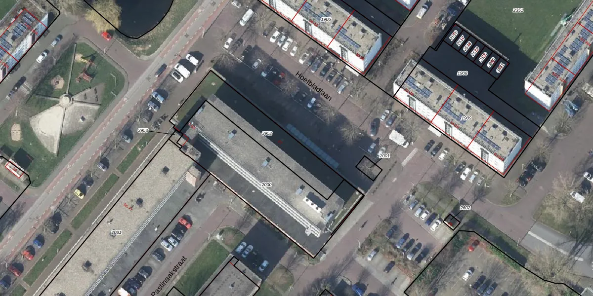 Het perceel waarop Hoefbladlaan 27 staat heeft een oppervlakte van 596 m². Dit is een groot perceel. De perceeloppervlakte wordt geregistreerd door het Kadaster. Gedetailleerde informatie over de maten van dit perceel kunt u vinden in het rapport Kadastrale kaart met maatvoering van Hoefbladlaan 27.