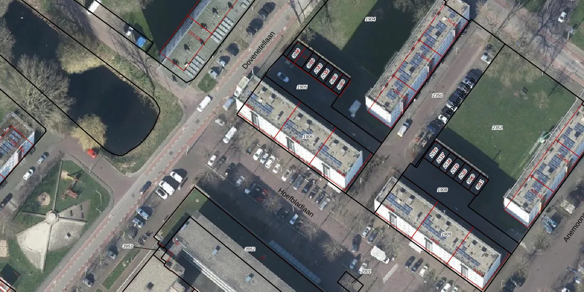 Het perceel waarop Hoefbladlaan 38 staat heeft een oppervlakte van 760 m². Dit is een groot perceel. De perceeloppervlakte wordt geregistreerd door het Kadaster. Gedetailleerde informatie over de maten van dit perceel kunt u vinden in het rapport Kadastrale kaart met maatvoering van Hoefbladlaan 38.