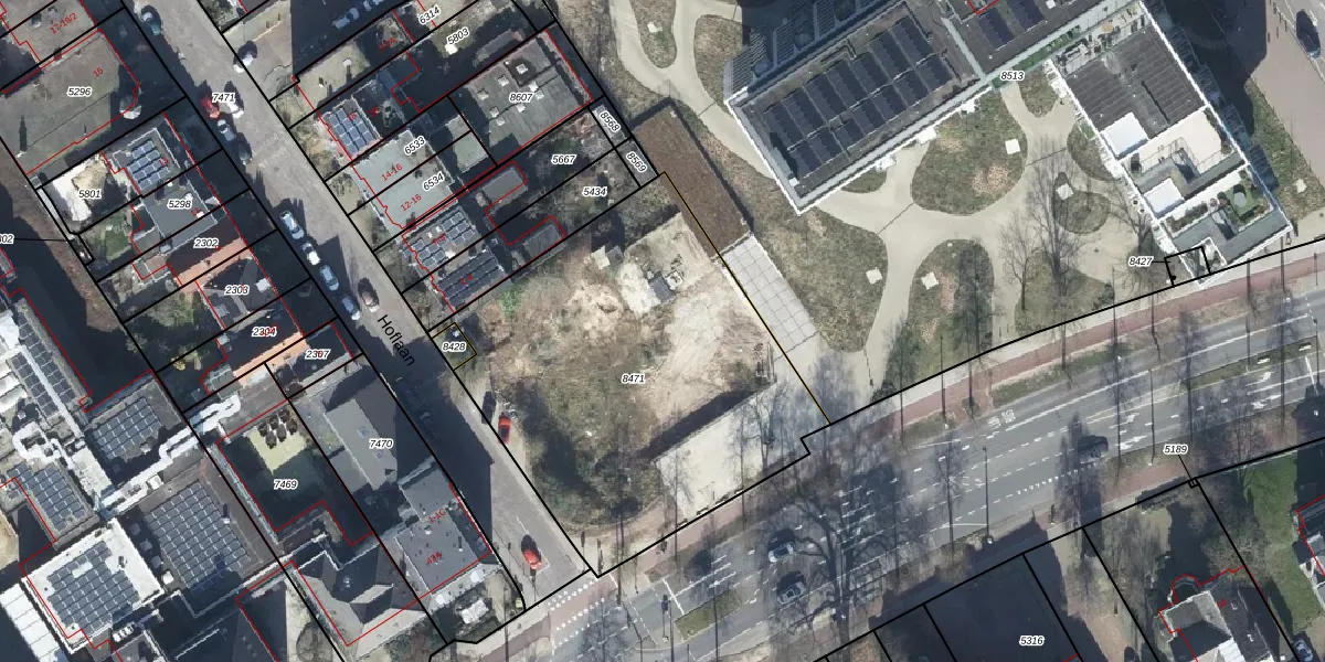 Hoflaan 2-21 is gelegen op kadastraal perceel AHM01R8471. Deze kadastrale aanduiding is uniek en wordt gebruikt door het Kadaster om eigendomsrechten en andere zakelijke rechten vast te leggen. Het perceel maakt onderdeel uit van de kadastrale gemeente Arnhem.