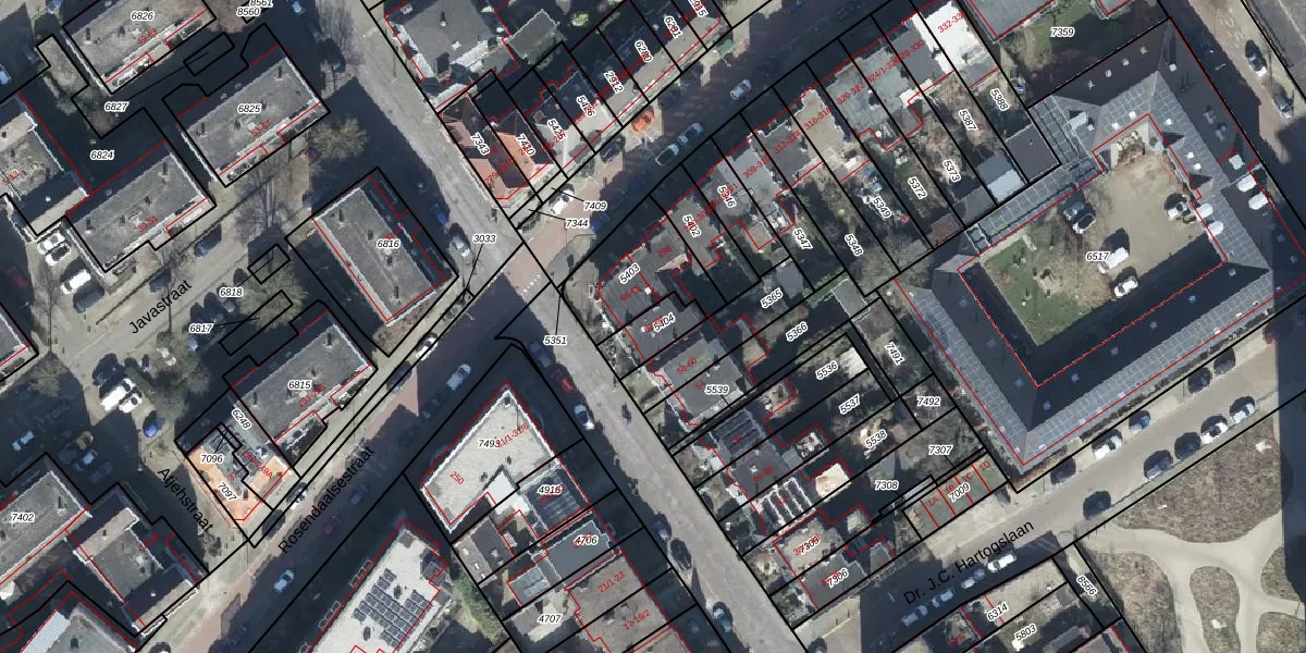 Het perceel waarop Hoflaan 64 staat heeft een oppervlakte van 97 m². Dit is een klein perceel. De perceeloppervlakte wordt geregistreerd door het Kadaster. Gedetailleerde informatie over de maten van dit perceel kunt u vinden in het rapport Kadastrale kaart met maatvoering van Hoflaan 64.