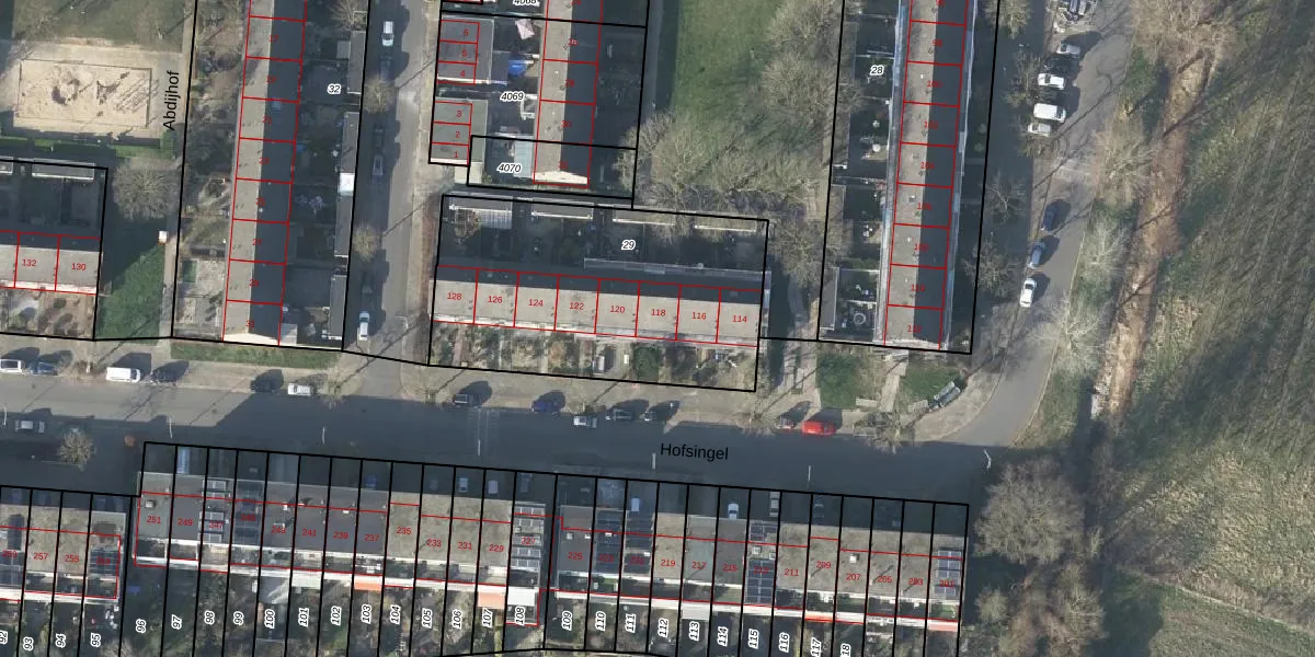 Het perceel waarop Hofsingel 118 staat heeft een oppervlakte van 1296 m². Dit is een zeer groot perceel. De perceeloppervlakte wordt geregistreerd door het Kadaster. Gedetailleerde informatie over de maten van dit perceel kunt u vinden in het rapport Kadastrale kaart met maatvoering van Hofsingel 118.