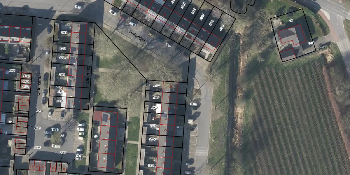 Gebruik de zoekbalk of klik op een perceel voor informatie over de adressen binnen dit perceel.