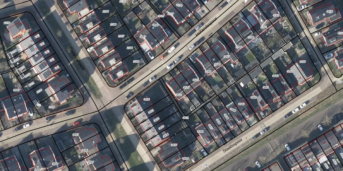 Het perceel waarop Hollandsspoor 8 staat heeft een oppervlakte van 173 m². Dit is een middelgroot perceel. De perceeloppervlakte wordt geregistreerd door het Kadaster. Gedetailleerde informatie over de maten van dit perceel kunt u vinden in het rapport Kadastrale kaart met maatvoering van Hollandsspoor 8.