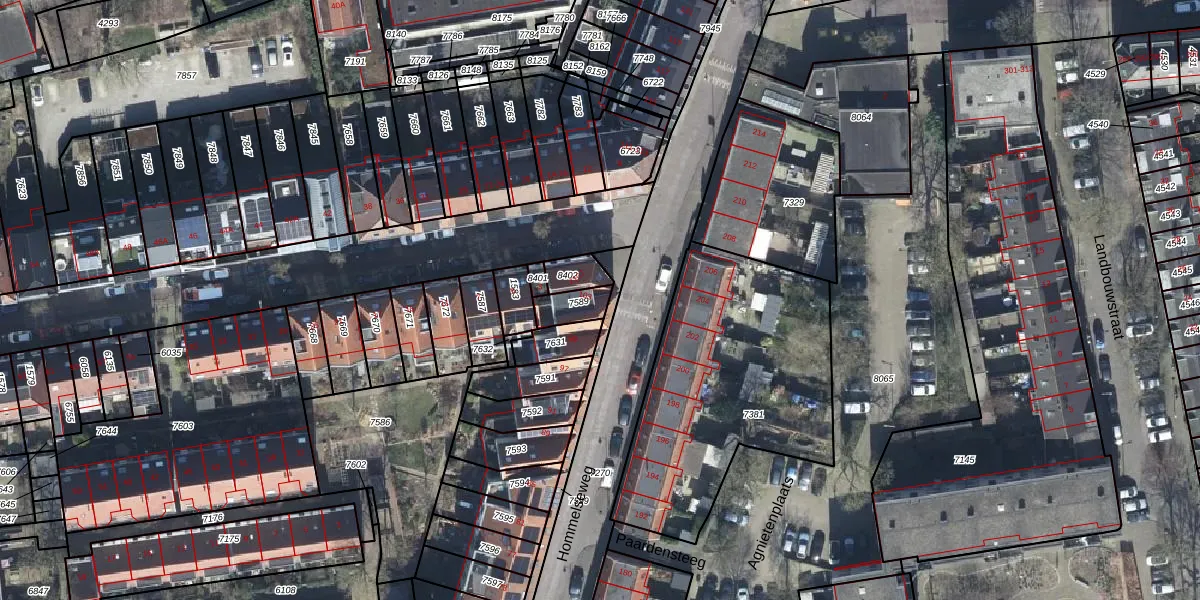Gebruik de zoekbalk of klik op een perceel voor informatie over de adressen binnen dit perceel.