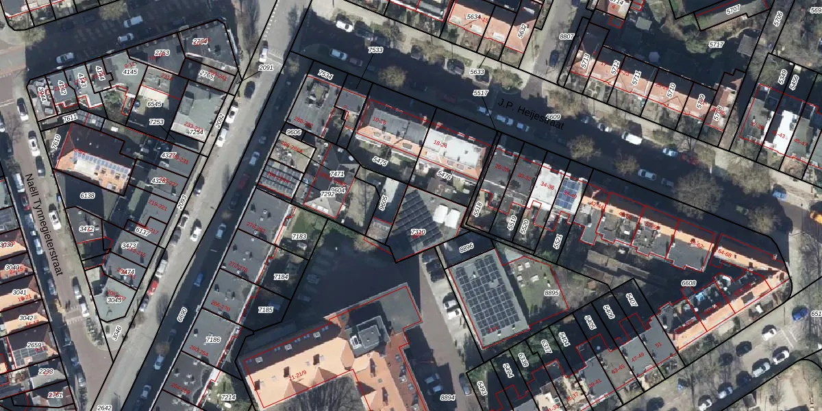 Gebruik de zoekbalk of klik op een perceel voor informatie over de adressen binnen dit perceel.