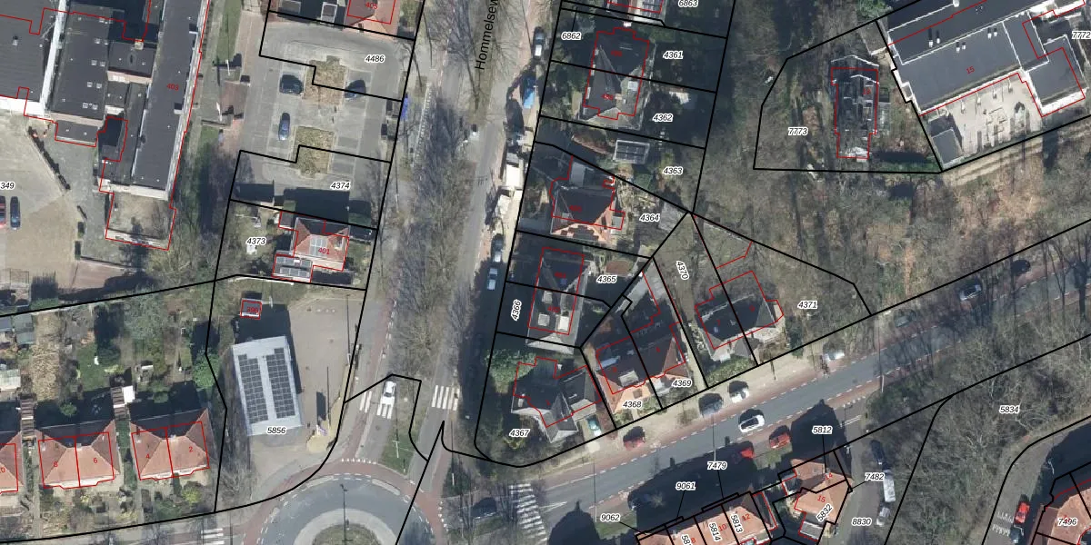 Het perceel waarop Hommelseweg 484 staat heeft een oppervlakte van 215 m². Dit is een middelgroot perceel. De perceeloppervlakte wordt geregistreerd door het Kadaster. Gedetailleerde informatie over de maten van dit perceel kunt u vinden in het rapport Kadastrale kaart met maatvoering van Hommelseweg 484.