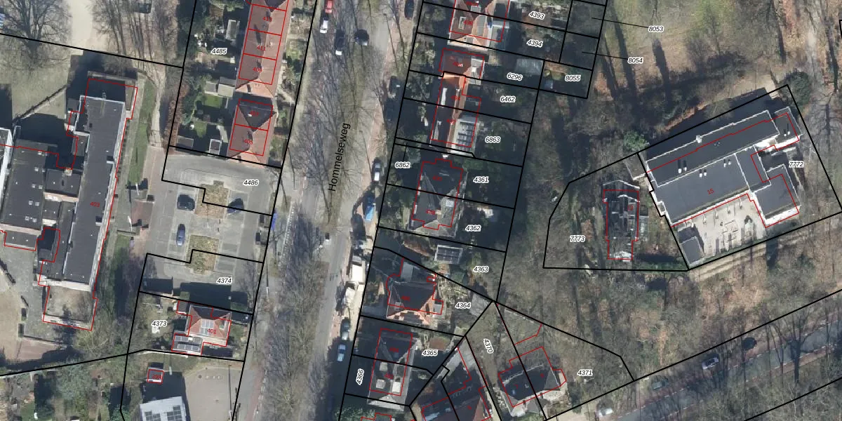 Het perceel waarop Hommelseweg 488 staat heeft een oppervlakte van 332 m². Dit is een groot perceel. De perceeloppervlakte wordt geregistreerd door het Kadaster. Gedetailleerde informatie over de maten van dit perceel kunt u vinden in het rapport Kadastrale kaart met maatvoering van Hommelseweg 488.