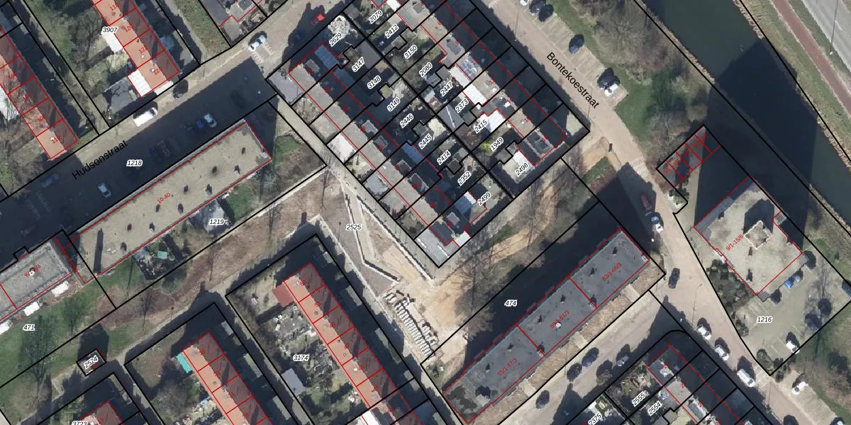 Gebruik de zoekbalk of klik op een perceel voor informatie over de adressen binnen dit perceel.