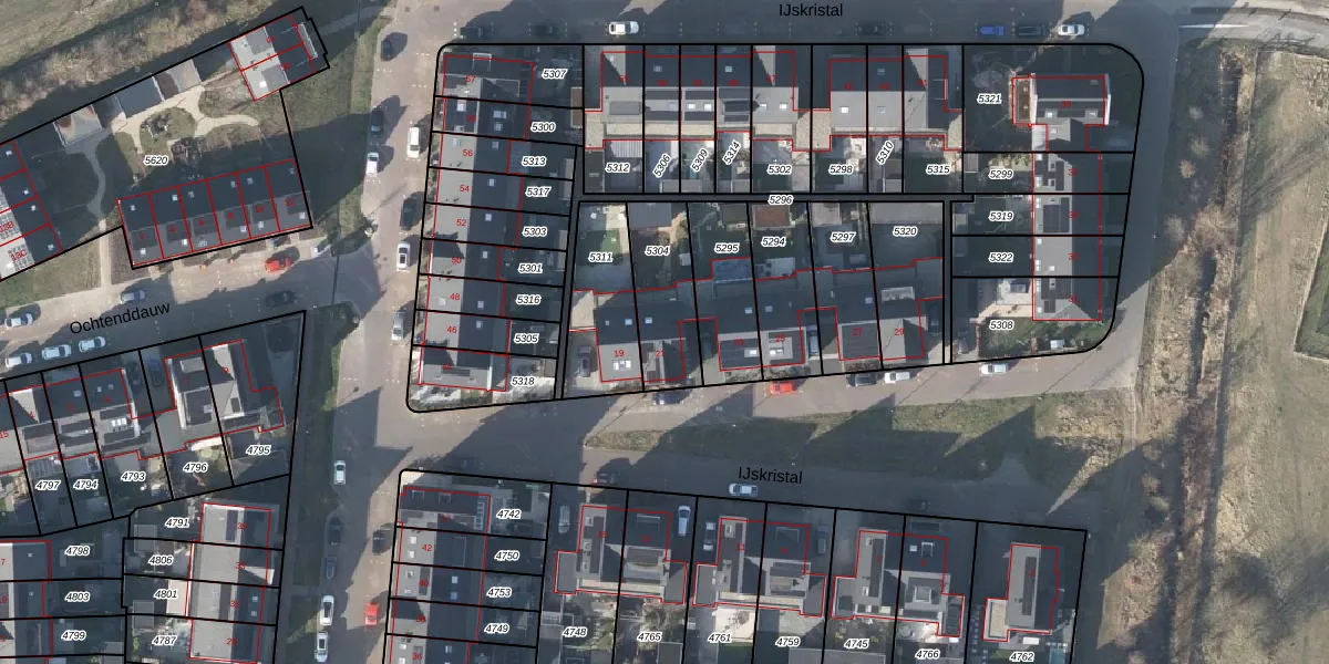 Het perceel waarop IJskristal 21 staat heeft een oppervlakte van 256 m². Dit is een middelgroot perceel. De perceeloppervlakte wordt geregistreerd door het Kadaster. Gedetailleerde informatie over de maten van dit perceel kunt u vinden in het rapport Kadastrale kaart met maatvoering van IJskristal 21.