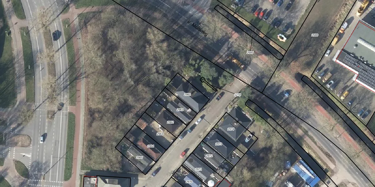 Het perceel waarop Ir. Molsweg 10 staat heeft een oppervlakte van 225 m². Dit is een middelgroot perceel. De perceeloppervlakte wordt geregistreerd door het Kadaster. Gedetailleerde informatie over de maten van dit perceel kunt u vinden in het rapport Kadastrale kaart met maatvoering van Ir. Molsweg 10.