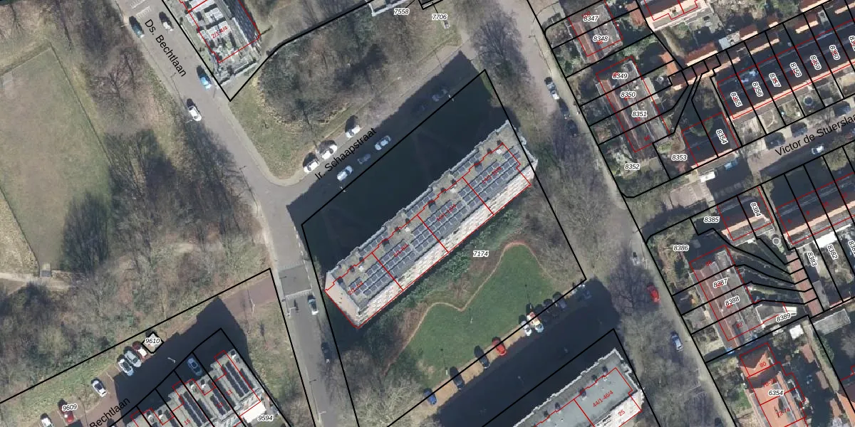 Het perceel waarop Ir. Schaapstraat 10-1 staat heeft een oppervlakte van 3067 m². Dit is een zeer groot perceel. De perceeloppervlakte wordt geregistreerd door het Kadaster. Gedetailleerde informatie over de maten van dit perceel kunt u vinden in het rapport Kadastrale kaart met maatvoering van Ir. Schaapstraat 10-1.