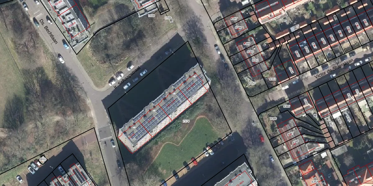Het perceel waarop Ir. Schaapstraat 14-3 staat heeft een oppervlakte van 3067 m². Dit is een zeer groot perceel. De perceeloppervlakte wordt geregistreerd door het Kadaster. Gedetailleerde informatie over de maten van dit perceel kunt u vinden in het rapport Kadastrale kaart met maatvoering van Ir. Schaapstraat 14-3.