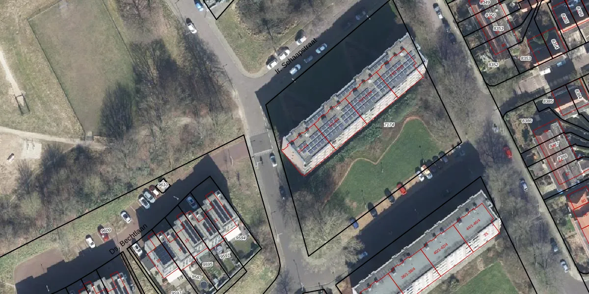 Het perceel waarop Ir. Schaapstraat 2-1 staat heeft een oppervlakte van 3067 m². Dit is een zeer groot perceel. De perceeloppervlakte wordt geregistreerd door het Kadaster. Gedetailleerde informatie over de maten van dit perceel kunt u vinden in het rapport Kadastrale kaart met maatvoering van Ir. Schaapstraat 2-1.