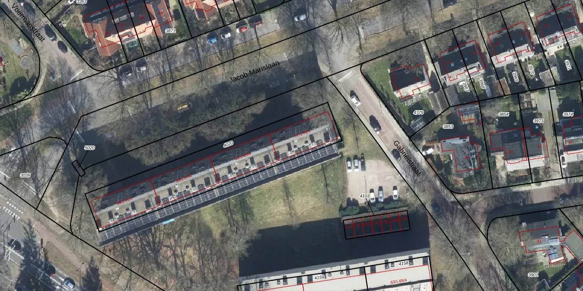 Het perceel waarop Jacob Marislaan 79-4 staat heeft een oppervlakte van 1246 m². Dit is een zeer groot perceel. De perceeloppervlakte wordt geregistreerd door het Kadaster. Gedetailleerde informatie over de maten van dit perceel kunt u vinden in het rapport Kadastrale kaart met maatvoering van Jacob Marislaan 79-4.