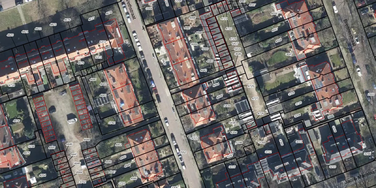 Het perceel waarop Jan Vethstraat 10 staat heeft een oppervlakte van 210 m². Dit is een middelgroot perceel. De perceeloppervlakte wordt geregistreerd door het Kadaster. Gedetailleerde informatie over de maten van dit perceel kunt u vinden in het rapport Kadastrale kaart met maatvoering van Jan Vethstraat 10.