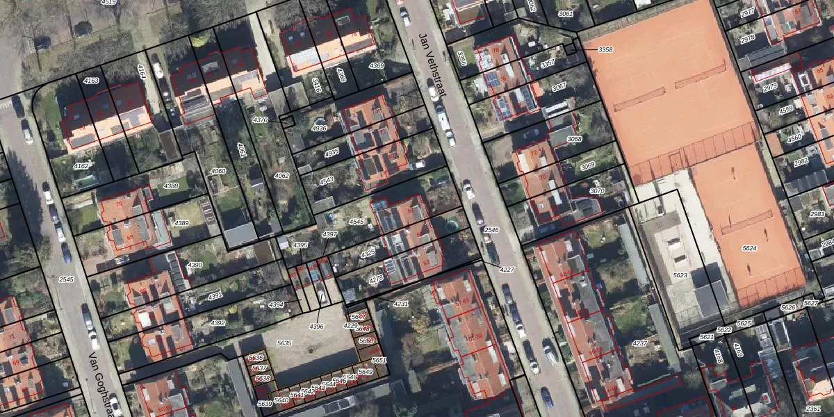 Gebruik de zoekbalk of klik op een perceel voor informatie over de adressen binnen dit perceel.