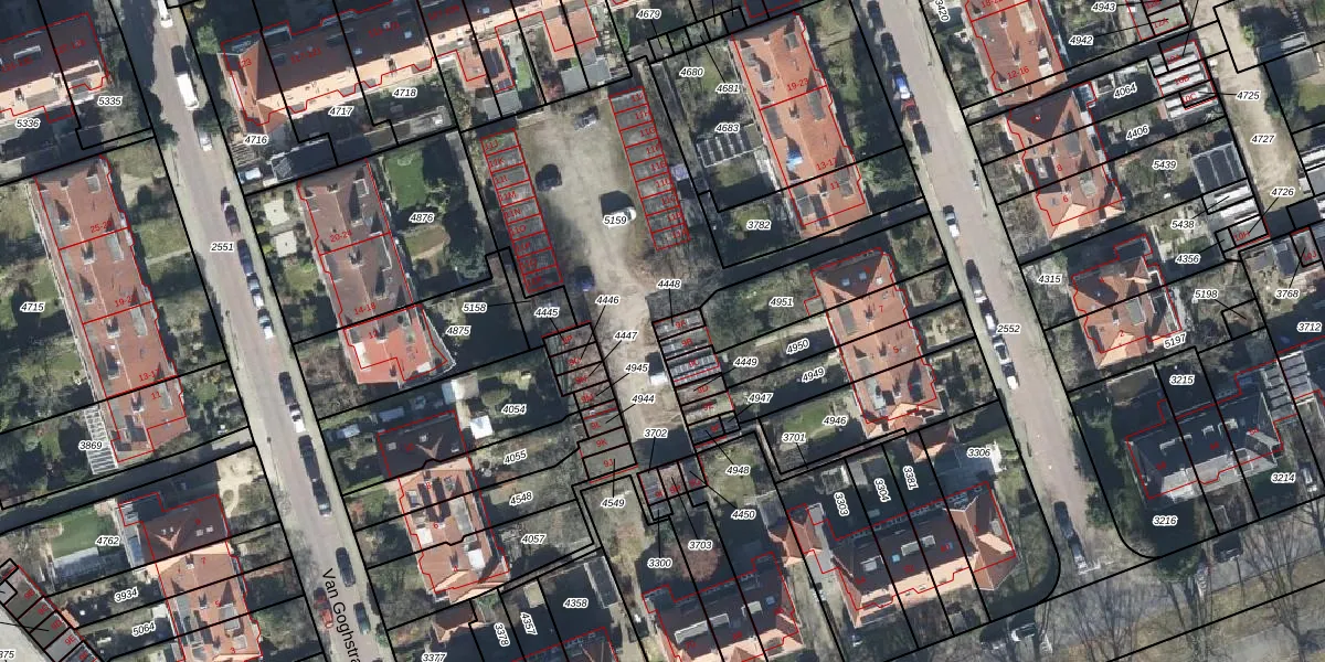 Het adres is gelegen op perceel 4448 in de sectie M en de kadastrale gemeente Arnhem. De kadastrale aanduiding is aldus AHM01-M-4448. Het perceel is 23 m² groot. Dat is kleiner dan de gemiddelde perceeloppervlakte in Arnhem, dat op 2526,79 m² ligt. Het kleinste perceel in de kadastrale gemeente is 0 m² groot. De grootste perceeloppervlakte is 1,57 km². Dit is het enige adres dat aanwezig is op het perceel. De huidige grenzen van het perceel zijn digitaal in de Basisregistratie Kadaster (BRK) geregistreerd op 20-03-2003.
