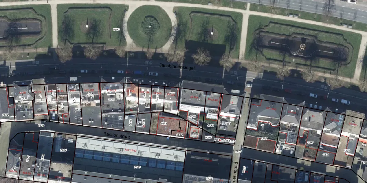 Het perceel waarop Jansbinnensingel 16 staat heeft een oppervlakte van 263 m². Dit is een middelgroot perceel. De perceeloppervlakte wordt geregistreerd door het Kadaster. Gedetailleerde informatie over de maten van dit perceel kunt u vinden in het rapport Kadastrale kaart met maatvoering van Jansbinnensingel 16.