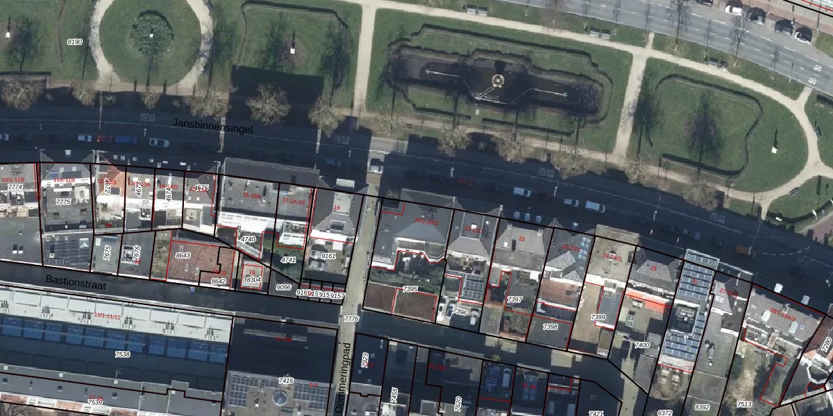 Het perceel waarop Jansbinnensingel 20-1 staat heeft een oppervlakte van 484 m². Dit is een groot perceel. De perceeloppervlakte wordt geregistreerd door het Kadaster. Gedetailleerde informatie over de maten van dit perceel kunt u vinden in het rapport Kadastrale kaart met maatvoering van Jansbinnensingel 20-1.