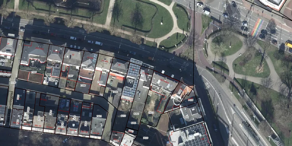 Het perceel waarop het adres ligt is AHM01-O-8392. De afkorting 'AHM01' staat voor kadastrale gemeente Arnhem. Het perceel is kleiner dan gemiddeld in Arnhem. Het perceel is 352 m² groot, terwijl het gemiddelde ligt op 2527,39 m². Het grootste perceel in de kadastrale gemeente is 1,57 km². Het kleinste perceel heeft een oppervlakte van 0 m². Er zijn 2 adressen aanwezig op het perceel. De laatste wijziging in het de Basisregistratie Kadaster (BRK) was op 16-04-2003.