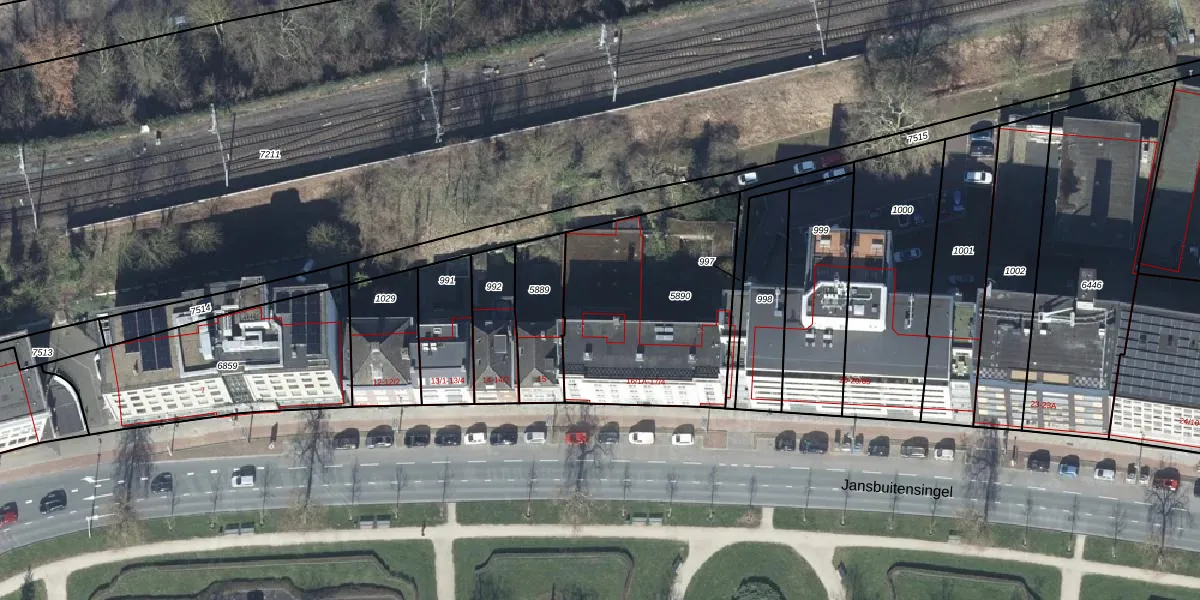 Het perceel waarop Jansbuitensingel 16-1F staat heeft een oppervlakte van 903 m². Dit is een groot perceel. De perceeloppervlakte wordt geregistreerd door het Kadaster. Gedetailleerde informatie over de maten van dit perceel kunt u vinden in het rapport Kadastrale kaart met maatvoering van Jansbuitensingel 16-1F.