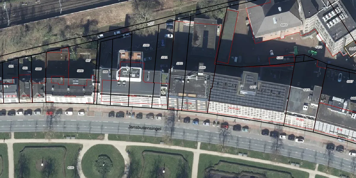 Het perceel waarop Jansbuitensingel 23-22 staat heeft een oppervlakte van 425 m². Dit is een groot perceel. De perceeloppervlakte wordt geregistreerd door het Kadaster. Gedetailleerde informatie over de maten van dit perceel kunt u vinden in het rapport Kadastrale kaart met maatvoering van Jansbuitensingel 23-22.