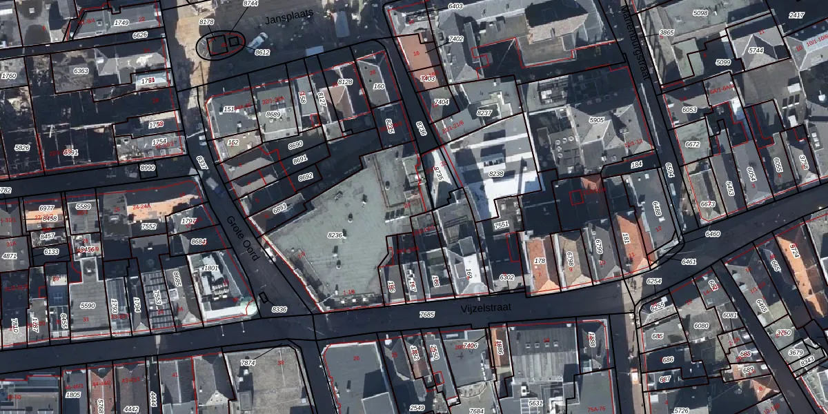 Het perceel waarop Jansplaats 24 staat heeft een oppervlakte van 945 m². Dit is een groot perceel. De perceeloppervlakte wordt geregistreerd door het Kadaster. Gedetailleerde informatie over de maten van dit perceel kunt u vinden in het rapport Kadastrale kaart met maatvoering van Jansplaats 24.