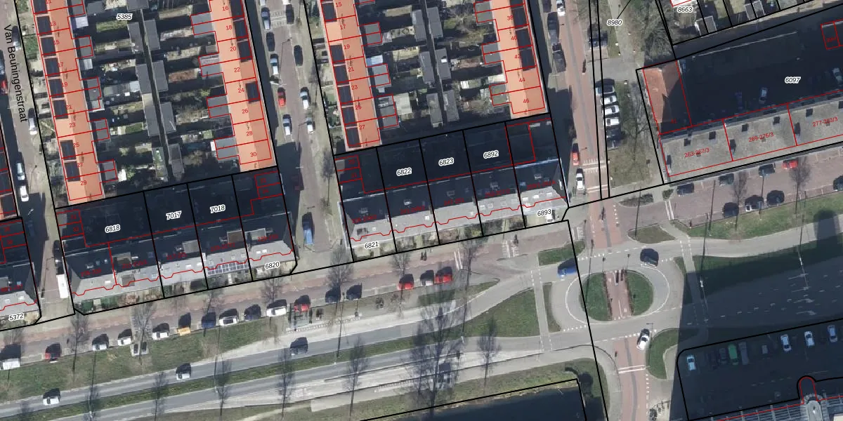 Het perceel waarop het adres ligt is AHM01-Q-6822. De afkorting 'AHM01' staat voor kadastrale gemeente Arnhem. Het perceel is 268 m² groot. Dat is kleiner dan de gemiddelde perceeloppervlakte in Arnhem, dat op 2519,97 m² ligt. De grootste perceeloppervlakte in de kadastrale gemeente is 1,57 km². De kleinste oppervlakte bedraagt 0 m². Er zijn 5 adressen aanwezig op het perceel. De huidige grenzen van het perceel zijn digitaal in de Basisregistratie Kadaster (BRK) geregistreerd op 27-04-2004.