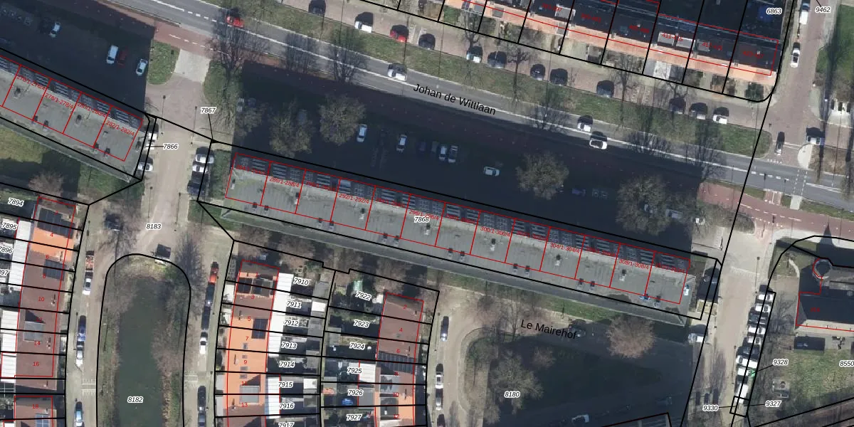 Het perceel waarop Johan de Wittlaan 296-2 staat heeft een oppervlakte van 1780 m². Dit is een zeer groot perceel. De perceeloppervlakte wordt geregistreerd door het Kadaster. Gedetailleerde informatie over de maten van dit perceel kunt u vinden in het rapport Kadastrale kaart met maatvoering van Johan de Wittlaan 296-2.